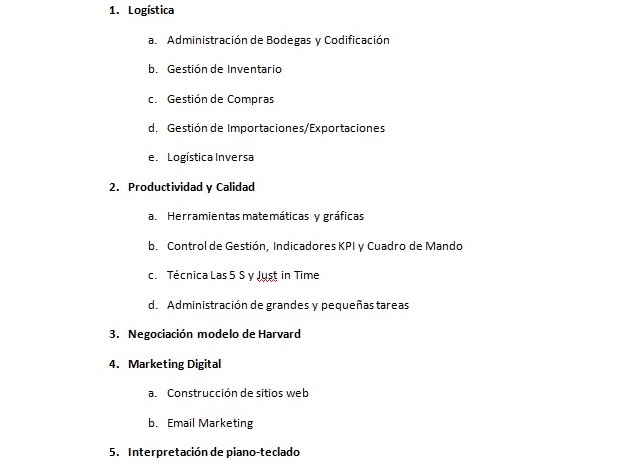 Información respecto de 10 cursos y asesorías